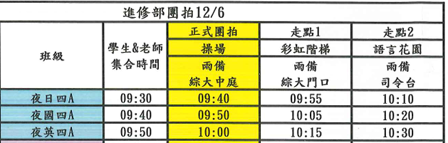 9:50 國四C13:35 國碩二13:50 國四B15:50 國四A