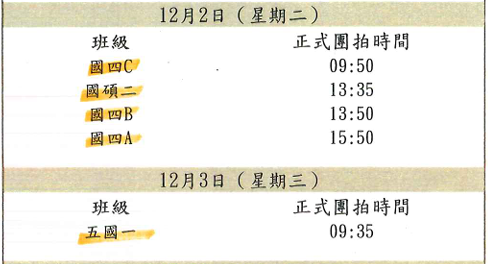 【國貿系】日/夜間 畢業團拍時間